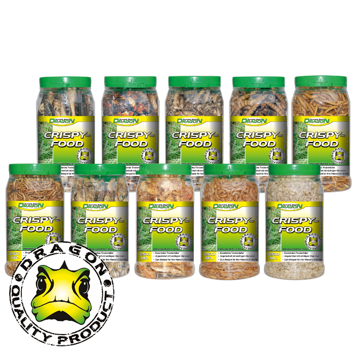 CRISPY FOOD ist die neue Futterserie von Dragon. Hier handelt es sich um gesund und vitaminreich ernährte Insekten, die auf schonende Weise gefriergetrocknet werden. Bei diesem Verfahren bleiben sämtliche Vitamine, Nährwerte und Geschmacksstoffe weitestgehend erhalten.
